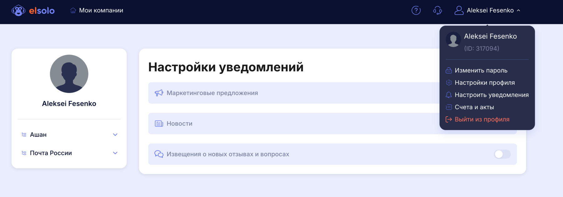 Уведомления в личном кабинете Elsolo помогают компаниям оперативно отслеживать активность вокруг своей карточки и не пропускать важные события.